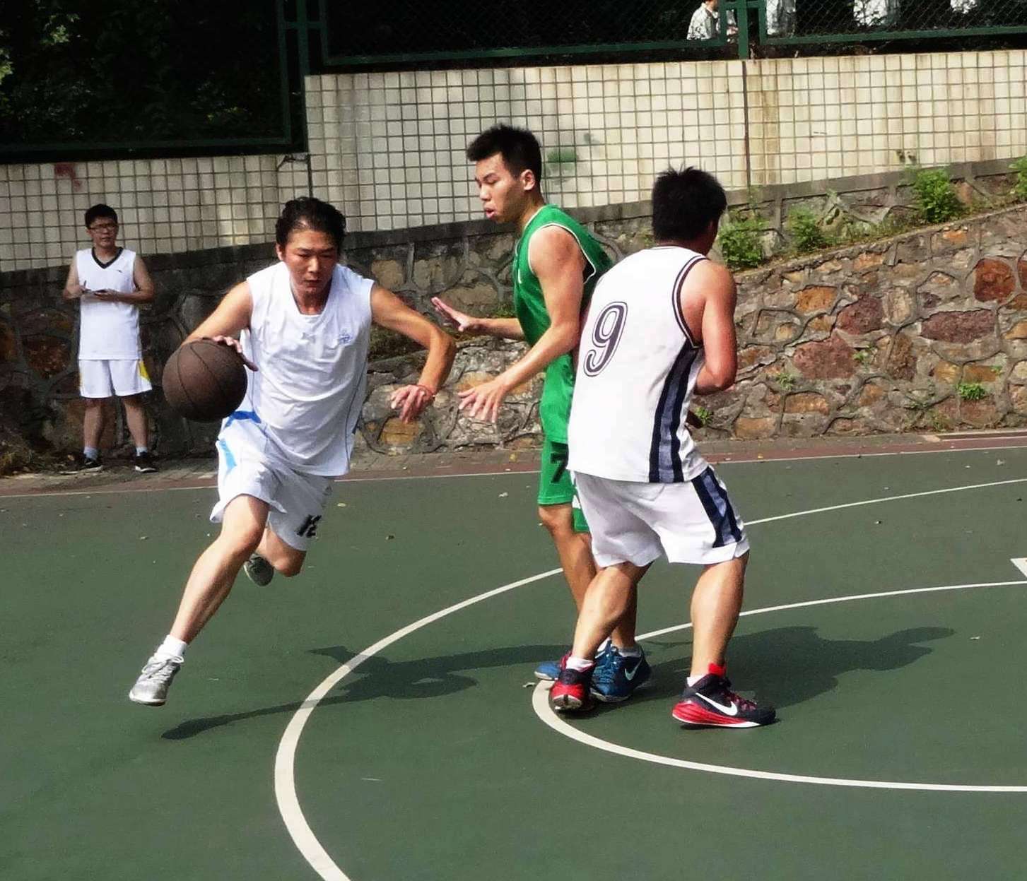 比赛伊始,我方队员迅速投入比赛,熟练地抢球、传球,并精准地投球。双方争夺异常激烈。尽管在上半场结束时,我们以微弱比分略低于华师大信息学院,但不服输的精神始终显现在我方队员的脸上。