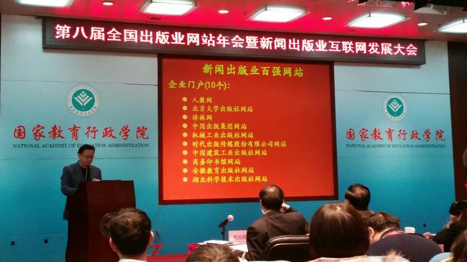 1月27日上午,第八届全国新闻出版业网络年会暨新闻出版业互联网发展大会在北京国家教育行政学院召开,大会揭晓了2014年全国新闻出版业百强网站。我社网络服务门户集群入选2014年新闻出版业百强网站,并位列新闻出版业企业门户十强。