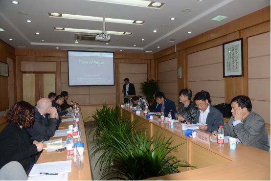 中国科学院中-非联合研究中心主任王青锋教授主持了本次会议,他首先介绍了《肯尼亚植物志》立项以来所进行的一系列调查研究的进展情况,分析了在调查中发现的若干问题原因,并对丛书整体构架和编写进度做了初步计划和安排。随后,各参与单位代表分别发言,就各卷册的内容编排和野外考察人选进行了交流和探讨。经过深入的讨论,代表们一致同意,从今年5月起,中-非中心每年将与肯尼亚国家博物馆的专家进行2次大规模的联合科学考察,另外,还将安排中方人员每年进行3次小规模的单独野外考察。按照与肯方的协议,所有在考察中收集到的植物标本还将同步进行数字化,由双方共享数字资源。