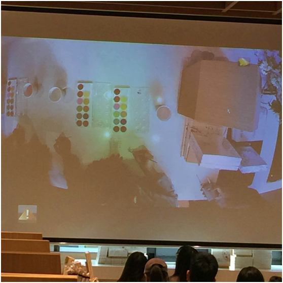 蔓玫现场手绘明信片,读者通过大屏幕观看实时画面