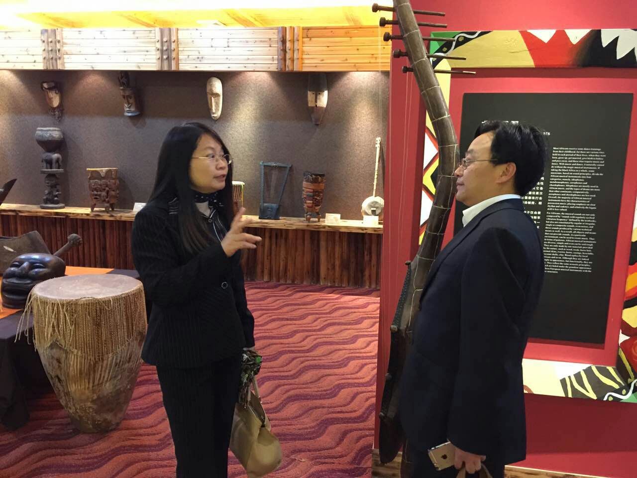 刘青海所长(左一)介绍浙江师范大学非洲博物馆