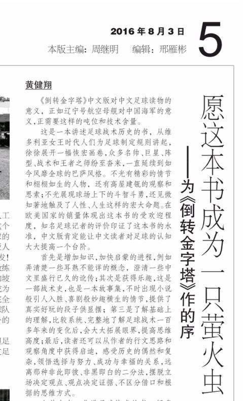 中国体育报刊登《倒转金字塔》黄健翔推荐序