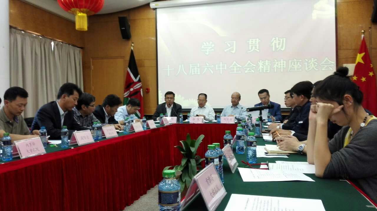 当地时间11月11日下午,长江传媒非洲公司受邀参加由中国驻肯尼亚大使馆组织的十八届六中全会精神学习座谈会。