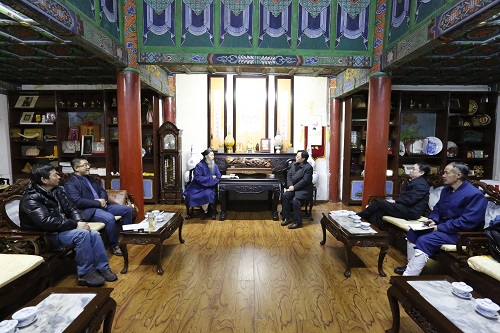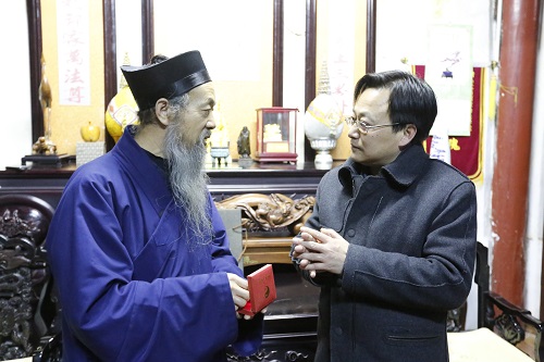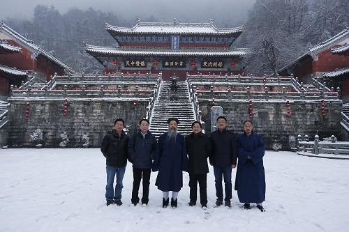瑞雪纷飞,武当问道!2017年2月7日,长江传媒董事、证券法务部部长、英国公司执行董事杨可,湖北科学技术出版社社长、非洲公司执行董事何龙,非洲公司总经理杨云鹏、监事祝李涛一行4人应邀赴武当山拜访中国道教协会会长李光富道长,就开展道教文化走出去合作进行了深入会谈。