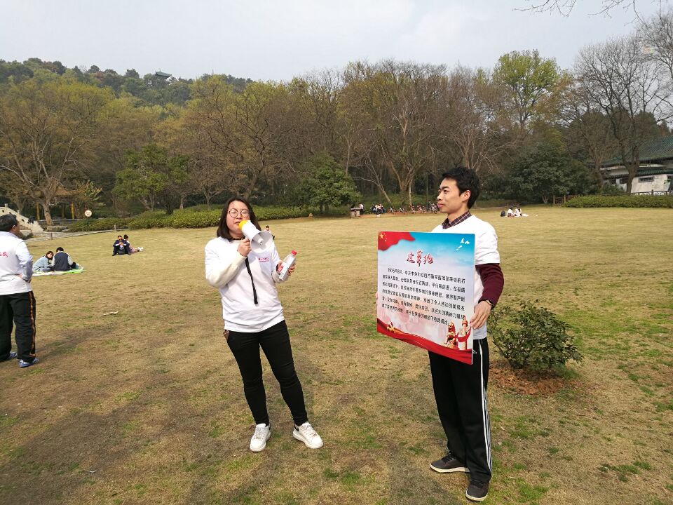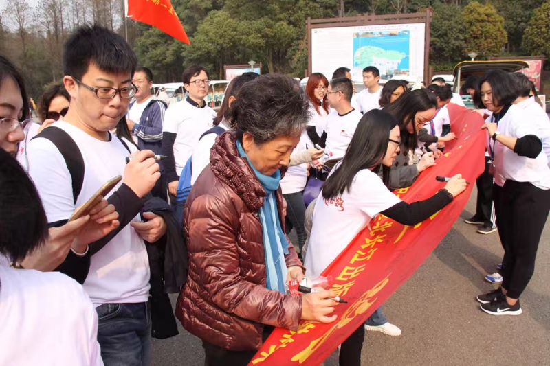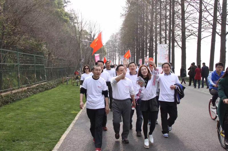 随后,全程4.5千米的徒步活动开始,大家穿着特别设计的文化衫,举起支部的旗帜,唱起红歌,途径风光堤、猴山步道、梅园步道、荷园步道、东梅园步道五大主题段,以饱满的精神状态完成了此次徒步,特别设置的“爬雪山”“过草地”“飞夺泸定桥”等环节,让大家重忆起那克难奋进、艰苦斗争的年代,不禁生出“和平来之不易,要加倍珍惜”的感叹和对革命先辈的崇敬之情。