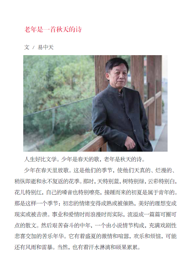 我们应正视生命的逐渐衰老,任何哀叹、伤感、郁闷、烦恼都无济于事,因为世间所有生命的老化,都是不可抗拒的自然规律。我们与其自哀自怨、自暴自弃、自寻烦恼,不如抖擞精神,自尊自重,调整心态,老有所学、老有所为、老有所乐,让自己的岁月更丰富、更充实、更深沉、更豁达、更优雅。2.作者简介