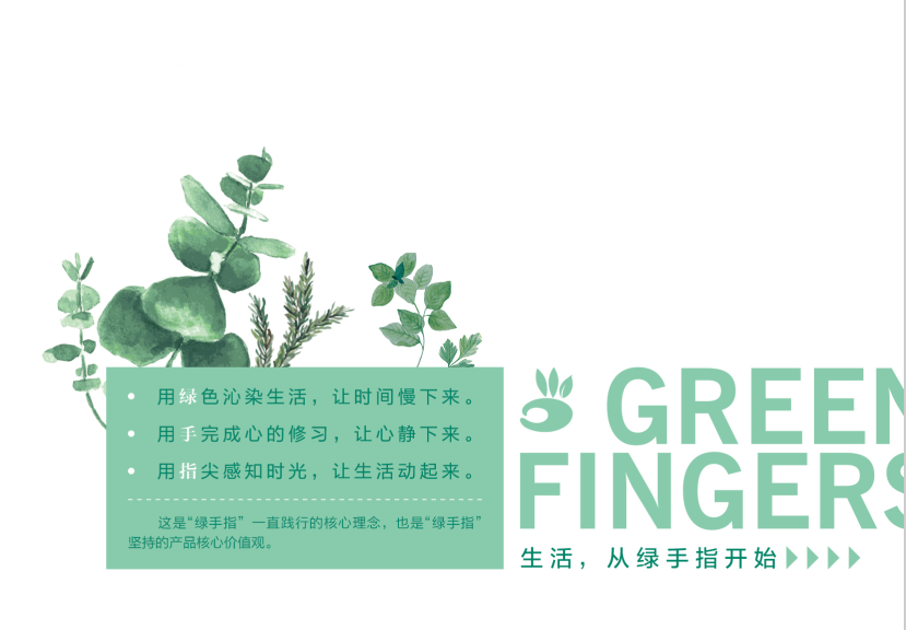 “绿手指”是我社着力打造的园艺传媒品牌,旨在为大众提供园艺产业相关的优质知识服务及绿色生活一站式整体解决方案。“用绿色沁染生活,让时间慢下来。用手完成心的修习,让心静下来。用指尖感知时光,让生活动起来。”是“绿手指”一直在践行的核心理念。