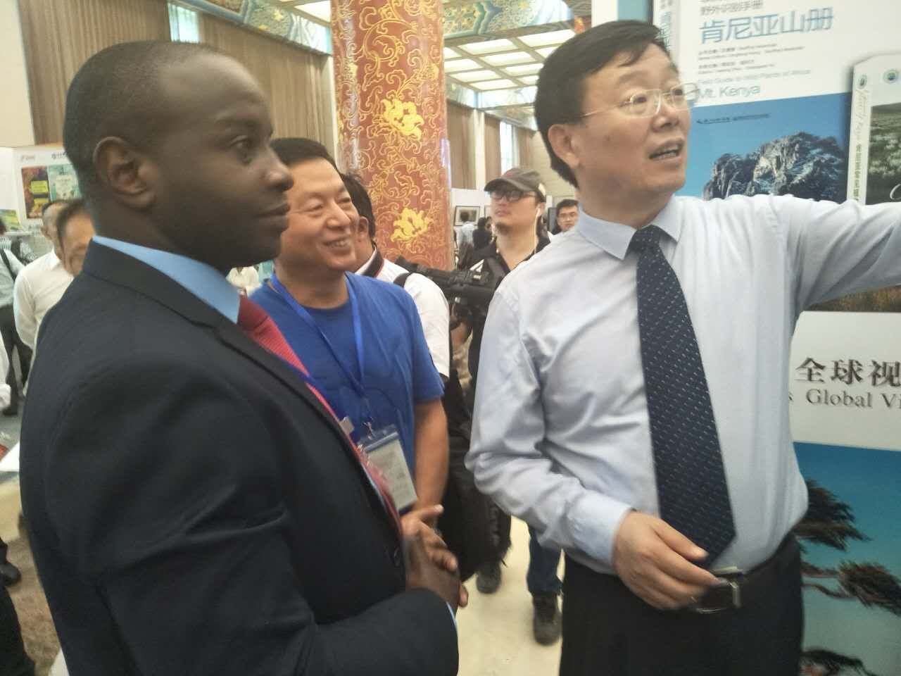 展会中,与会领导视察各参展商展位,国家新闻出版广电总局周慧琳副局长一行在英爵意公司的展位前驻足,周慧琳副局长对英爵意公司在去年BIBF上举办的中肯出版文化合作恳谈会暨非洲主题图书首发式记忆犹新,详细询问了公司的近况,并问候专程来国内参加书展的肯尼亚员工布莱恩。公司副总经理祝李涛对公司近来的工作进展和收获以及遇到的问题进行了简要的汇报,周慧琳副局长对公司的工作表示肯定,勉励继续做好中非出版文化交流工作。