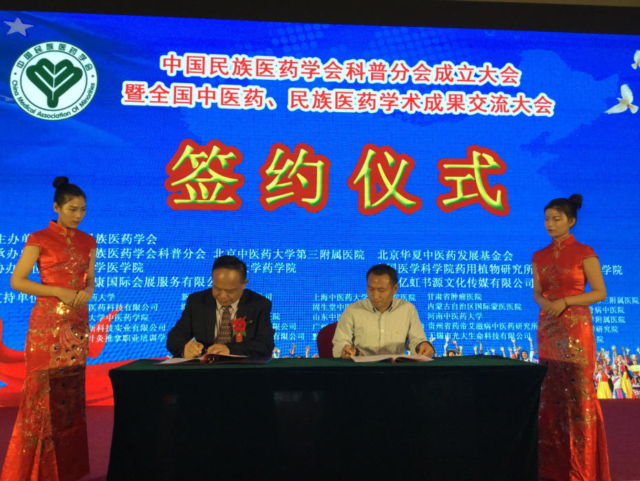中国民族医药学会科普分会成立大会暨全国中医药、民族医药学术成果交流大会于2017年9月21日在北京隆重召开。我社首席编辑冯友仁、高教编辑室副主任宋志阳应邀参会。会上冯友仁代表湖北科学技术出版社与中国民族医药学会签订了出版战略合作协议,双方将发挥各自优势,在民族医学领域的古籍整理、学术研究、医学科普、民族医药文化挖掘、民族医药文化传播等方面真诚合作,编辑出版民族医药学术和科普系列图书,此举有助于普及民族医药知识,提高全民健康水平,推进健康中国建设。