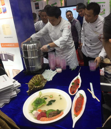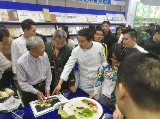 2017年10月28日上午,第16届华中图书交易会的湖北社会公益出版、湖北学术著作出版的展台前,中国烹饪大师、湖北经济学院副教授邹志平携我社出版的图书——中国首部莲藕主题菜品专著、湖北省社会公益基金项目《中国莲藕菜》以及养生莲藕菜品亮相本次交易会。邹志平先生还展示了以莲藕为材料的菜品做法,一截肥白的秋藕在大师娴熟的手法下转眼变成一道赏心悦目、飘香四溢、闻之垂涎的佳肴。湖北省副省长郭生练、湖北省新闻出版广电局局长张良成、长江出版传媒集团董事长陈义国在参观展馆时,翻阅了《中国莲藕菜》,并观摩了莲藕菜品的制作方法,对图书和邹大师娴熟精湛的技艺给予了高度的评价。