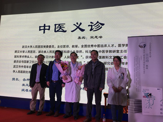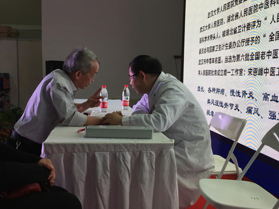 10月28日上午,科技社特邀武汉大学人民医院(湖北省人民医院)中医科主任,国家优秀中医人才、西医内科学博士,硕士生导师宋恩峰教授,亮相第16届华中图书交易会,进行了一个多小时的中医义诊,为广大读者提供健康咨询服务。