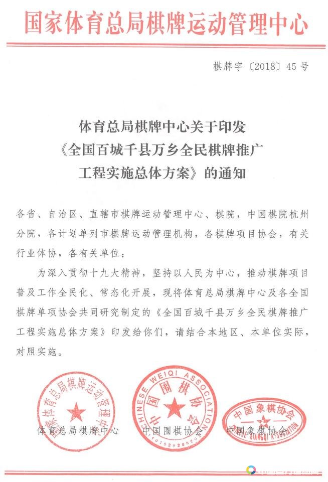 《全国百城千县万乡全民棋牌推广工程实施总体方案》