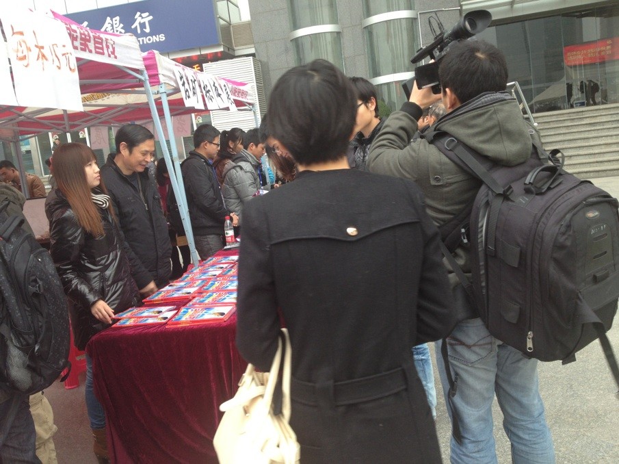 在此次活动中,我社主要携带了今年出版的科普专著——《科学解读世界末日》(1000册),该书在当天的活动中造成了极大的反响,场面一度达到非常强烈的程度,较大地丰富了整个活动的内容。这种火爆的气氛吸引了本地知名媒体——“湖北经视”、“湖北电视台”的记者的采访。