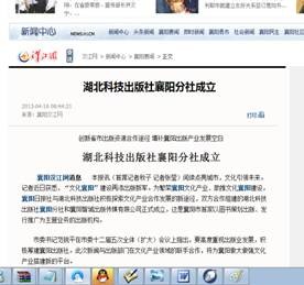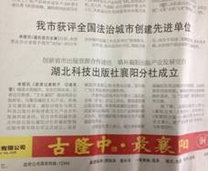 为繁荣襄阳文化产业、助推文化襄阳建设,襄阳日报社与湖北科技出版社积极探索文化产业合作发展的新途径,双方合作组建的湖北科技出版社襄阳分社和襄阳智城出版传媒有限公司于2013年4月正式成立,这是襄阳市首家以图书策划出版、发行推广为主营业务的出版机构。