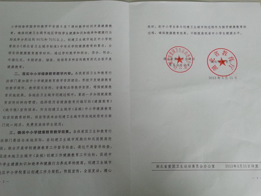 为了贯彻落实省委省政府提出的建设“健康幸福湖北”的要求,认真抓好卫生城市创建工作和“健康湖北”全民行动计划,建立持续长效机制,切实提高我省人民群众健康意识和水平,改变我省学校健康教育无统一教材的问题,省卫生厅、省爱卫办与省教育厅组织华中科技大学同济公共卫生学院、湖北省健康教育所等机构,于2012年有针对性地编写了湖北省健康教育地方专题教材——《健康教育》(城市版)。此教材是我省健康教育专业教学研究者和技术指导实践者根据近几年的教学、科研、培训、指导实践中研究的成果。它根据学生不同阶段健康成长的需要,结合健康素养基本知识内容,以图文并茂的形式,传播各种正确的健康理念和卫生知识。2013年4月,湖北省爱国卫生运动委员会办公室、湖北省教育厅联合发文,向全省创建卫生城市(县城)地区推荐使用此套教材。