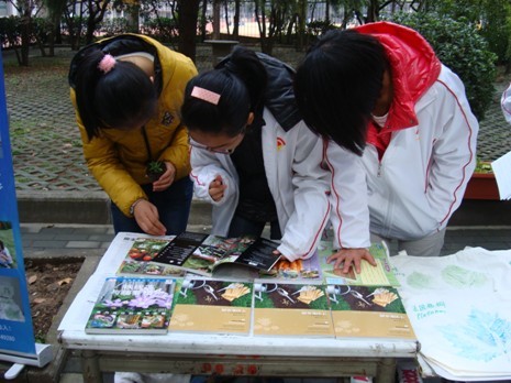 本次环保宣传周活动的内容丰富多样:印制了节能减排的环保宣传单,介绍了在生活中我们力所能及的环保行动;展示了以一次性筷子制作的小盆景等废物再利用的手工作品,呼吁大家减少一次性筷子、餐盒的使用;义卖用树叶拓印制作的精美环保袋,为下一次的环保活动筹集经费的同时号召大家减少使用塑料袋;免费赠送《厨余变沃土》《香草花园》等“绿手指”系列丛书征集环保志愿者们加入回收生活垃圾来制作堆肥的行列中来。为期一周的活动得到了老师与同学们的热烈响应与支持,大家纷纷表示,今后在生活中将更加注重节能减排,身体力行地参与环境保护。活动取得了良好的宣传效果,意义深远。