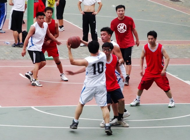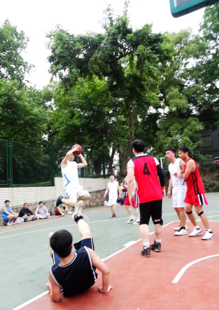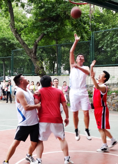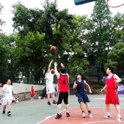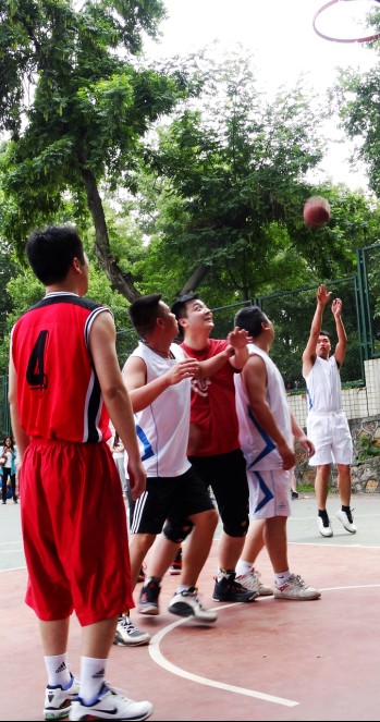 我社参加本次篮球赛的队员有:何龙社长、邱新友、刘辉、许可、李大林、高然、宋志阳、徐竹、喻杨、李准、凌霖、李隆、马恩豫、操晓鸣、陈正显、张任重。下午4点,随着裁判员一声清脆悦耳的哨音,本次篮球赛赛事展开,场上的气氛立刻变得紧张而激烈起来,赛场上的队员们都迅速进入状态,个个雄姿英发,当身体在球场上飞驰,让梦想在篮筐中奔放,激情已然在篮球中释放,成功悄然在心中荡漾。在场上你争我夺,你攻我守,通力合作,队员们积极跑位,为队友作掩护,还时不时有精妙的传球、漂亮的配合和精彩的上篮。比赛中也有意外跌倒、腿脚抽筋的事情发生,可是每个人并没有因此而影响比赛情绪,队员之间相互鼓舞相互安慰一下接着再来。一场场紧张激烈、扣人心弦的角逐,不断地在篮球场上上演,整个比赛打了四节,每节比赛都高潮迭起,令人惊心动魄!