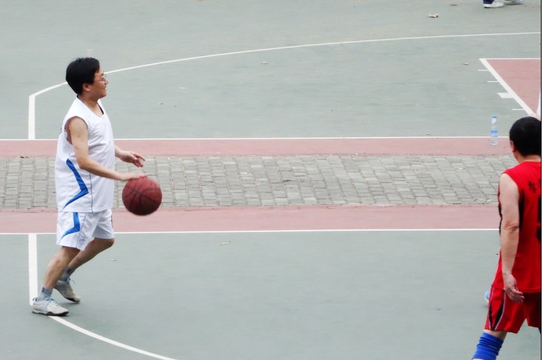 本次比赛按20分钟一节,共赛四节。这次比赛,选手们在场上的比赛表现可圈可点。在第一节比赛中,队员操晓鸣的表现抢眼,只见他一个假动作晃过防守人员,嘴里大叫着“掩护我”接着突破,再带球上篮——球进了,他这一连串动作一气呵成,赢得了周围观众的阵阵喝彩!操晓鸣这样精彩的表演时常会出现,带给人们阵阵惊喜!还有队员刘辉的表现也突出,他往往虚晃一招,只见他抓住空隙,屡屡突破得手,连进几个2分远投,何社长见此激烈的比赛也是跃跃欲试,在第四节终于技痒难耐上场一试身手,接球转身投篮——又进了,精彩的场面在赛场上时有发生,使得周围观看的篮球宝贝欢呼声连连。
