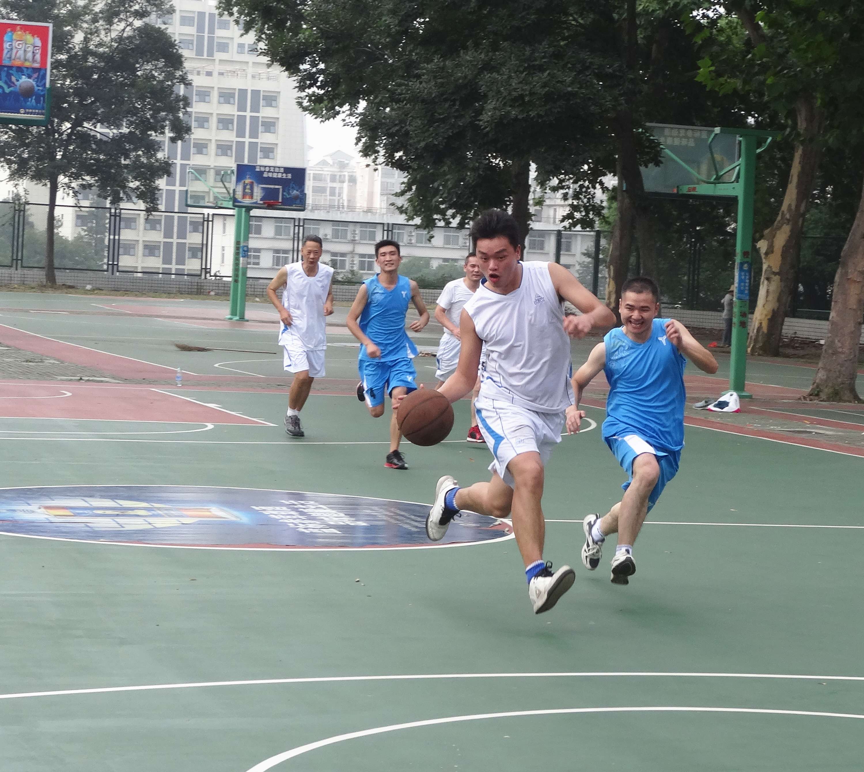 比赛在裁判员一声清脆的哨响后正式开始了。我社队员稳扎稳打,利用身高优势迅速占据了场上优势,在篮下进攻屡屡得手。其中我社队员李江更是上演了一出抢到篮板球后长驱直入,杀入对方禁区投篮得手“一条龙”的好戏。第一节战罢,我社以17比10领先。