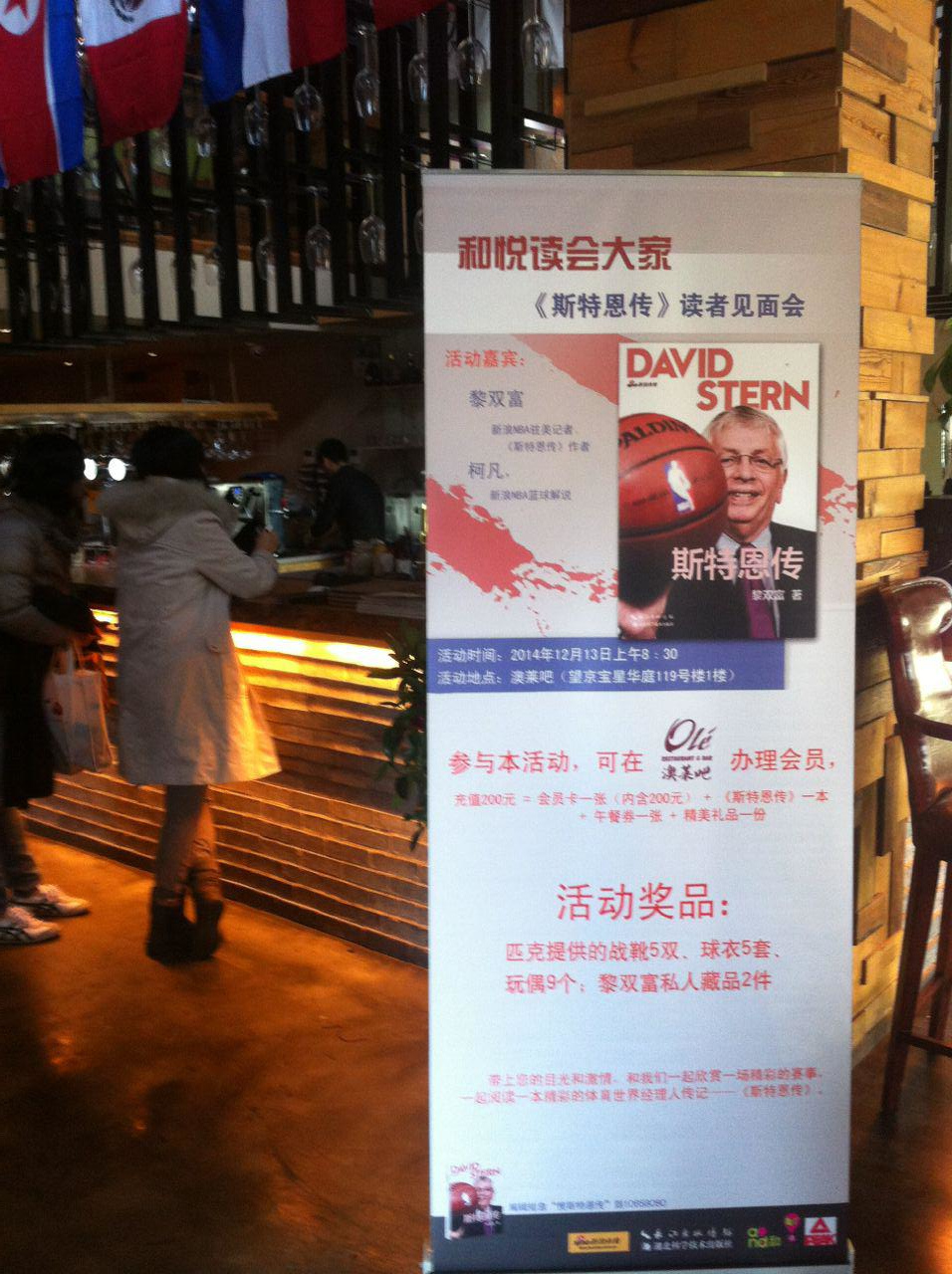 12月13日,我社推出的新浪著名驻美记者黎双富新书《斯特恩传》读者见面会暨看球活动在北京望京澳莱吧展开。