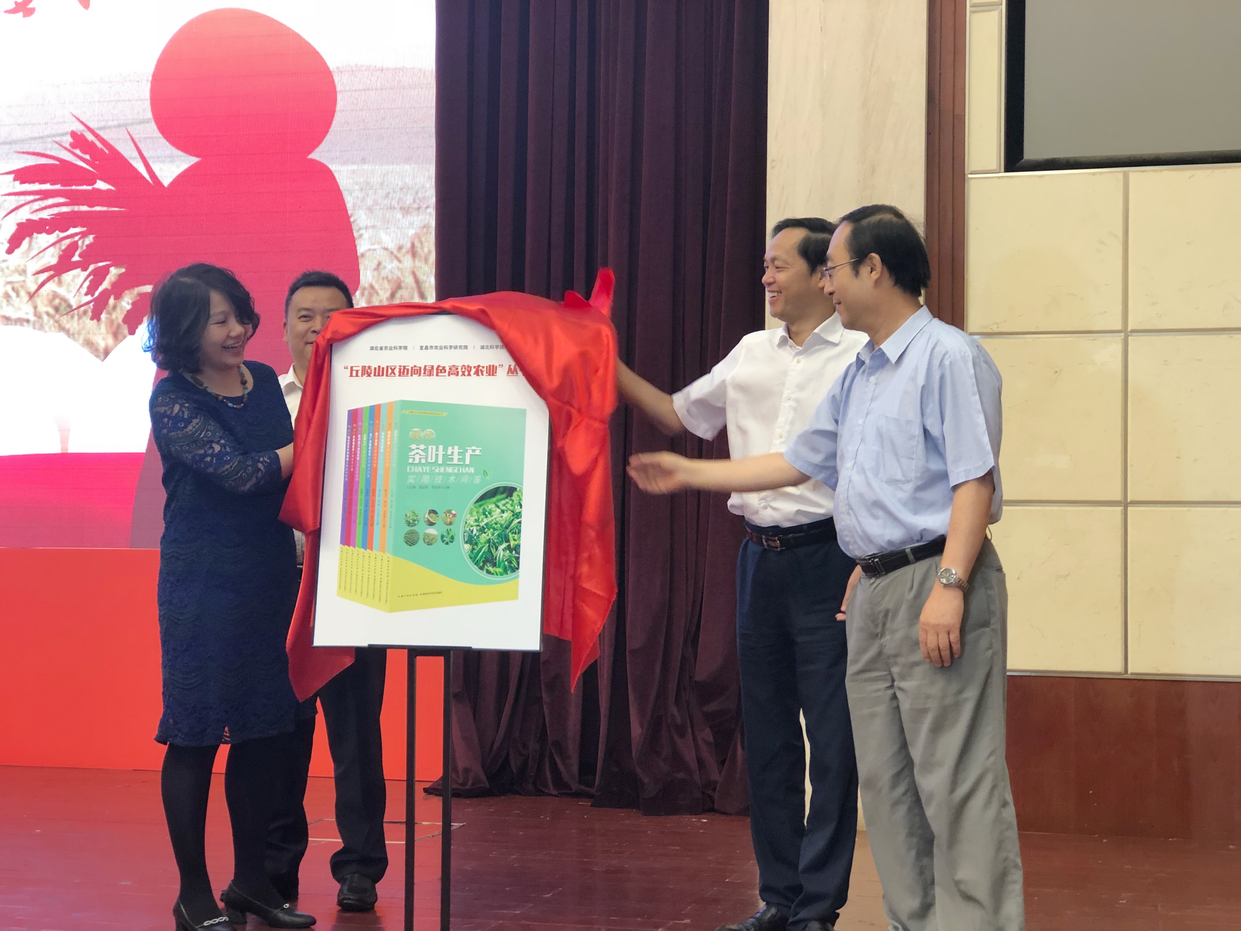 会上还举行了“丘陵山区迈向绿色高效农业”丛书首发式。农业农村部科技发展中心主任助理翟勇、湖北省农业科学院党委书记刘晓洪、宜昌市政府副市长卢军、湖北科学技术出版社副社长唐洁共同为“丘陵山区迈向绿色高效农业”丛书启封揭幕。