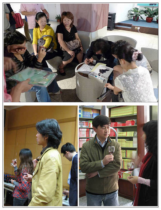 每场读饮会,均由出版社与作者代表共同解开金字塔书堆的金色丝带,象征着《你所不知道的葡萄酒》在当地正式上市发行。